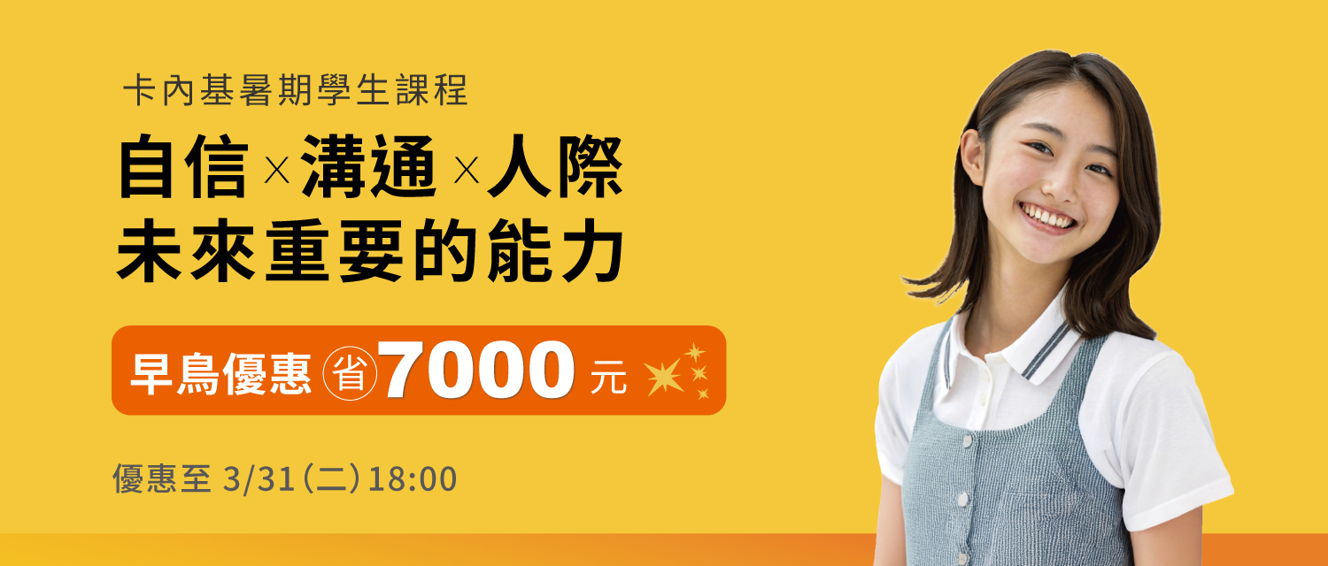 🎯 早鳥優惠:2026/3/31 (二) 晚間6點前報名繳費,現省 NT$7000,立即為孩子掌握競爭優勢。